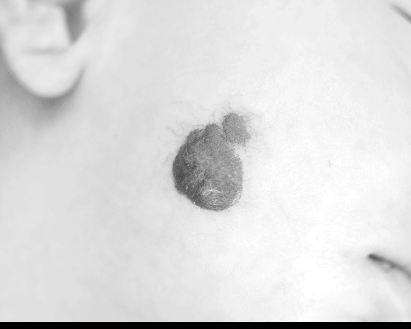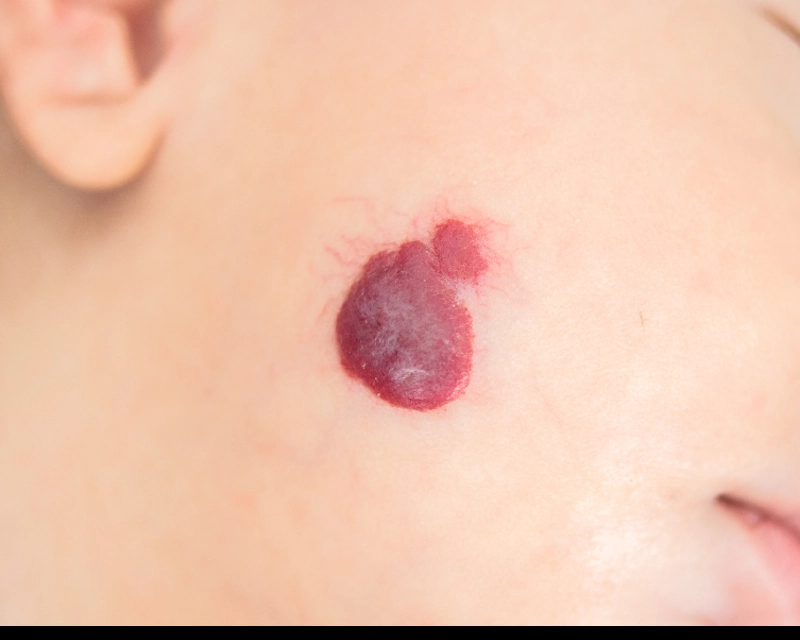 Se observa una neoformación tumoral hemangiomatosa, bien delimitada, de contornos regulares e implantación superficial en la mejilla derecha,a cual se ha mantenido estacionaria y no se acompaña de síntomas.